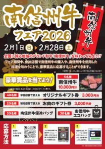 京都を中心に高い評価を得ている当地域のブランド和牛「南信州牛」をより多くの消費者の皆さんに食べていただき、その美味しさを知っていただく機会として「南信州牛フェア2026」を開催します。